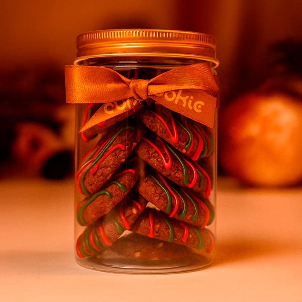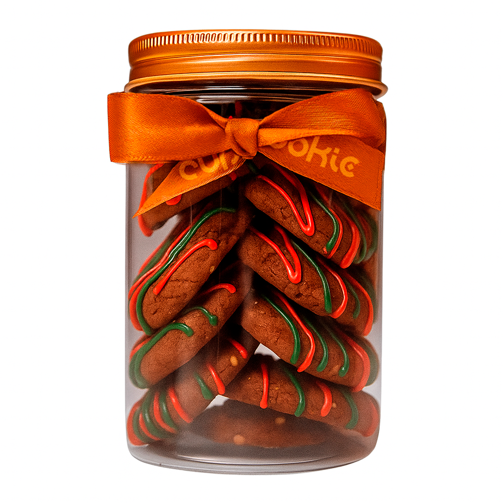 Ingredientes: farinha de trigo, manteiga, chocolate ao leite, chocolate meio amargo, açúcar mascavo, açúcar refinado, ovo, amido de milho, fermento, bicarbonato, sal, cobertura de chocolate, corante para chocolate verde e vermelho. Contém trigo e derivados de trigo. Contém derivados do leite e soja. Contém glúten. Contém lactose.
