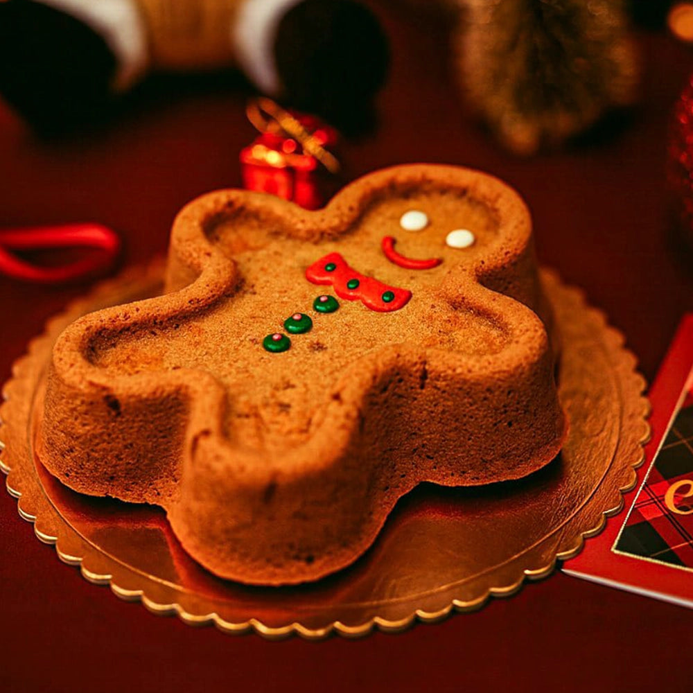 Torta clássica em formato de boneco de gengibre natalino, feita de massa de cookie de baunilha com gotas de chocolate e muuuito recheio de ganache de chocolate ou nutella!